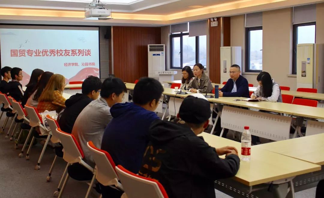 2019年11月8日下午,永利集团3044欢迎光临联合沁园书院在中和楼502开展国际贸易专业优秀校友系列座谈会第一讲。99级国际贸易专业毕业生、江苏苏美达轻纺国际贸易有限公司副总经理兼事业一部总经理朱薇,国际贸易学科带头人、沁园书院院长任志成教授,永利集团3044欢迎光临教师武晓霞博士及50多名2019级国际贸易专业学生参加了本次座谈。