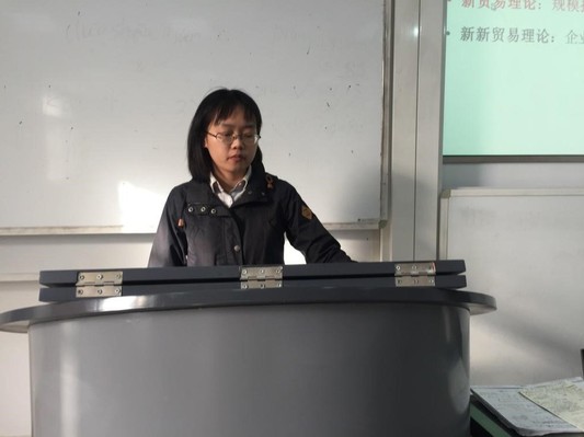 世界经济组宋婕的汇报主题为Scale Economics, Product Differentiation, and the Pattern of Trade的文献阅读情况,主要就论文概要、构建模型的目的、推导和解读展开汇报。参会研究生积极提出问题并与主汇报人进行互动,并了解到数据的来源,受益匪浅。
