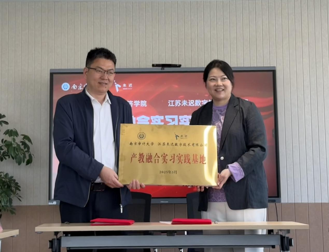 签约仪式上,双方领导共同签署了产教融合实习实践基地合作协议。樊士德院长向未迟数字技术有限公司董事长王安霞和副总裁吕游颁发了校外实践导师聘书,标志着双方在人才培养和实践教学方面的合作正式开启。