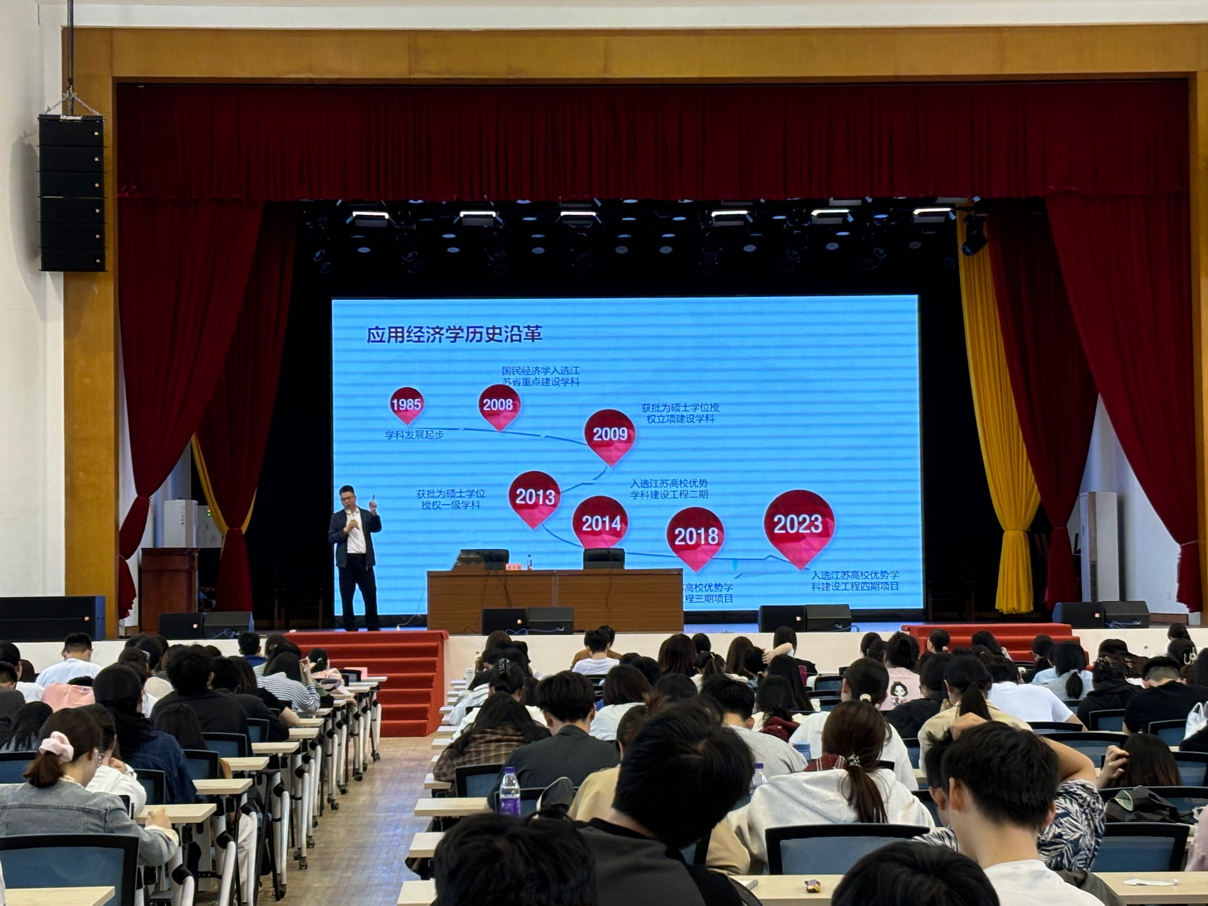 讲座伊始,樊士德院长从当前考研形势入手,深入分析了研究生教育的发展趋势。他指出,在知识经济时代,研究生学历已成为提升个人竞争力的重要途径。樊院长特别强调,考研选择应当与个人职业规划相结合,建议同学们根据自身兴趣和未来发展方向,理性选择报考院校和专业。针对学生们普遍关心的学硕与专硕选择问题,樊院长进行了详细解读。他通过具体案例,生动阐述了不同类型研究生的培养目标和就业前景,帮助同学们建立清晰的认知。此外,樊院长还分享了高效的备考策略,包括时间管理、复习方法等方面的实用建议并邀请了秦杰老师为大家传授学习经验。最后,樊院长表达了对学生们的美好祝愿,希望同学们都能够明确目标,合理规划,在未来的考研道路上取得优异成绩。